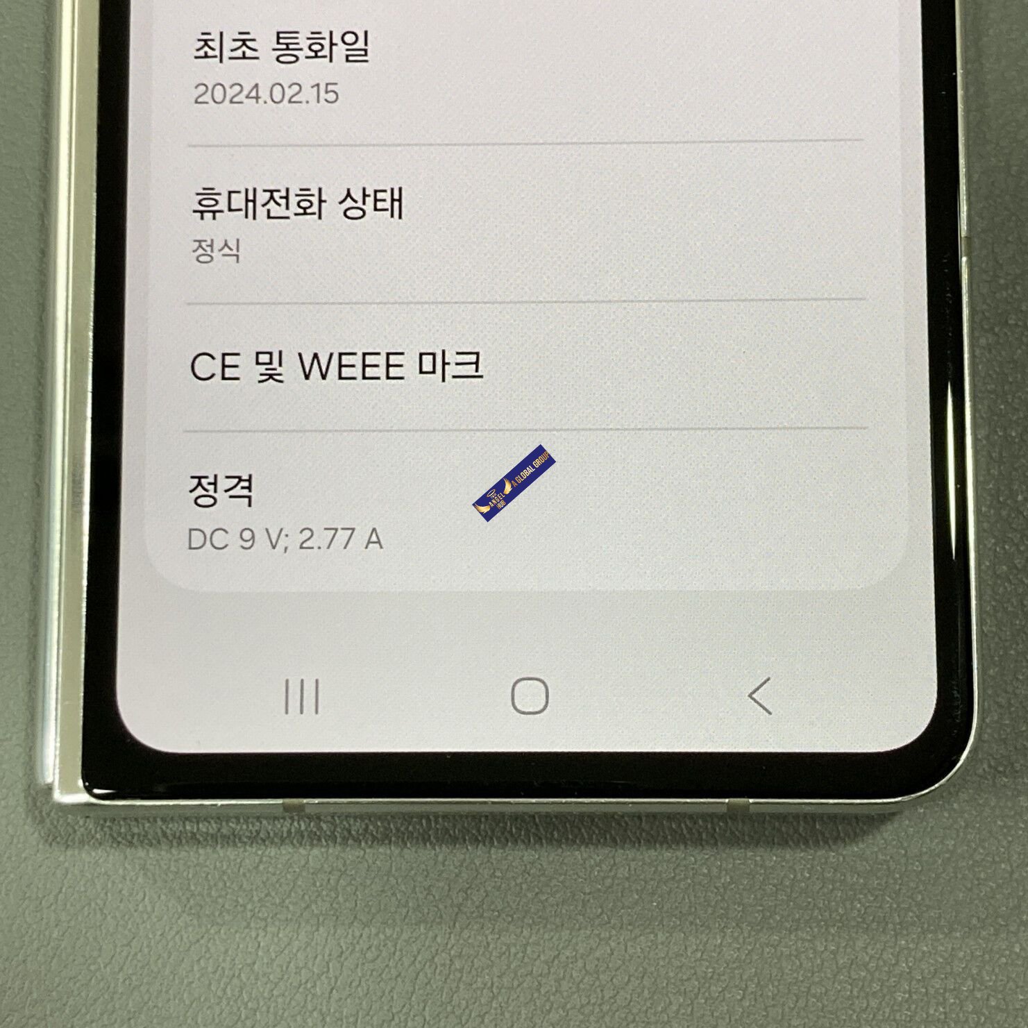 Galaxy Z Fold5 256GB — Korean variant (한국판), used device sourced in South Korea (대한민국).